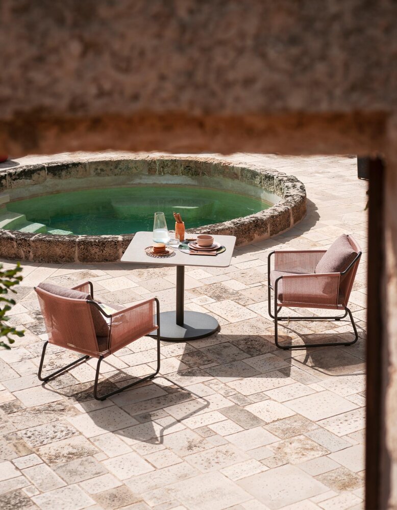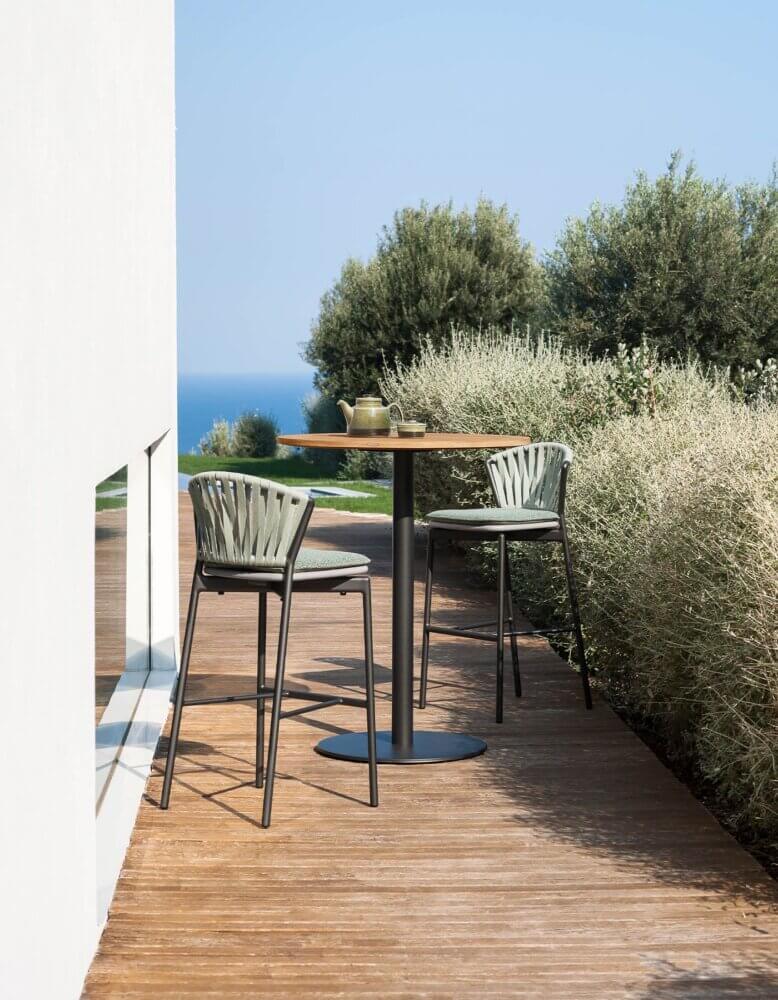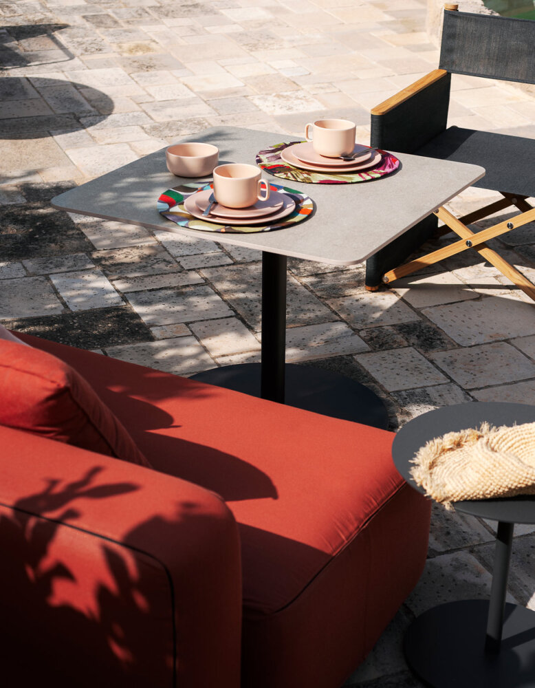 A bistro table with a round or square top, declined in different sizes, light and transversal: this is BUTTON, a collection able to furnish with taste and discretion both a small metropolitan balcony and a large terrace of a restaurant by the sea.