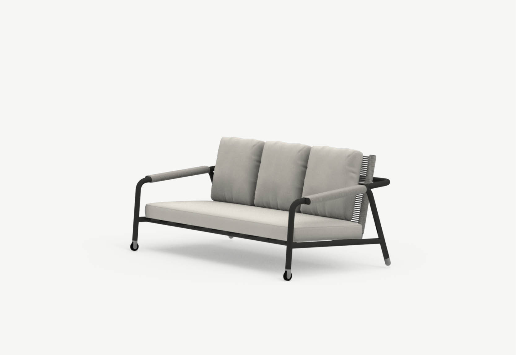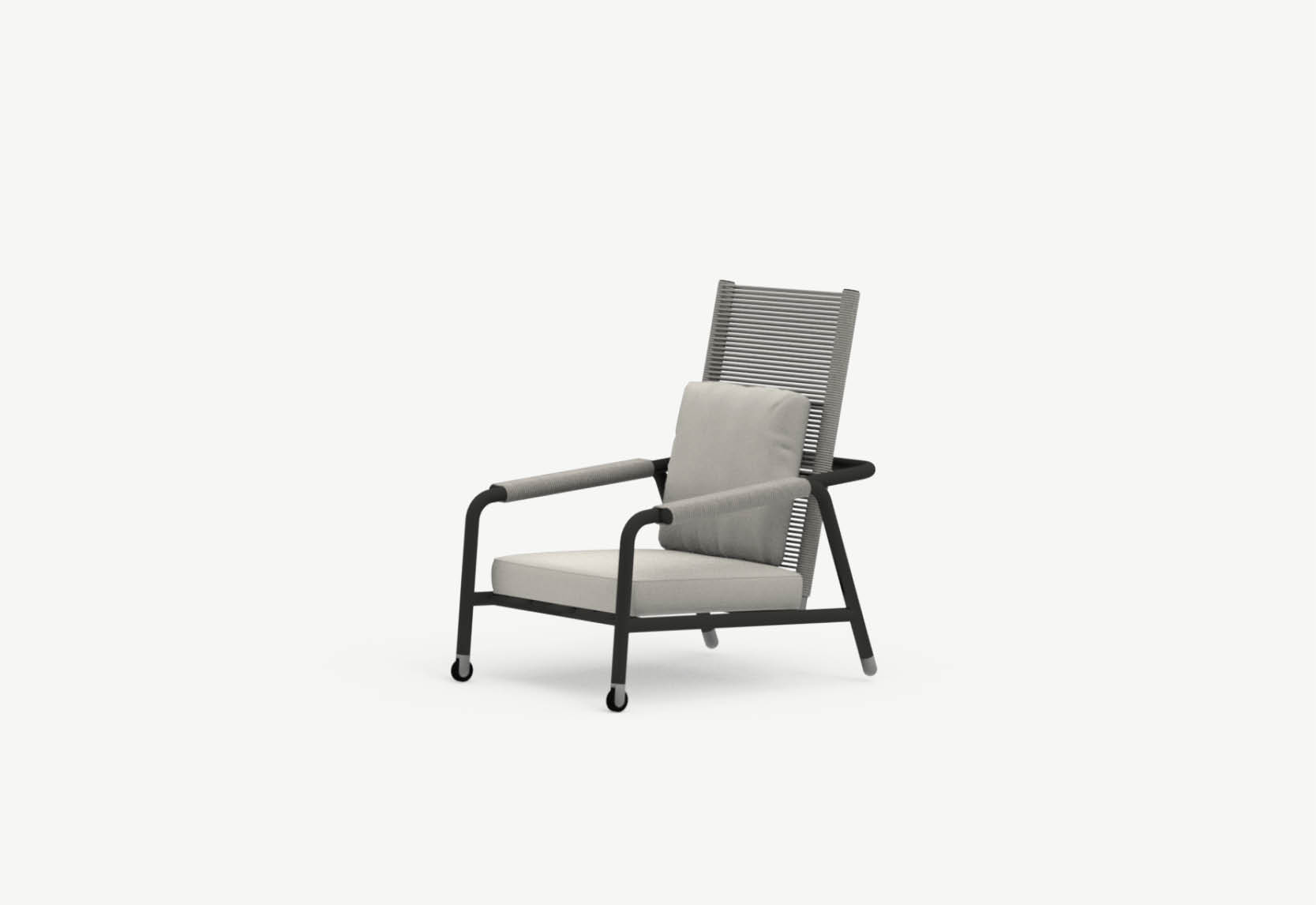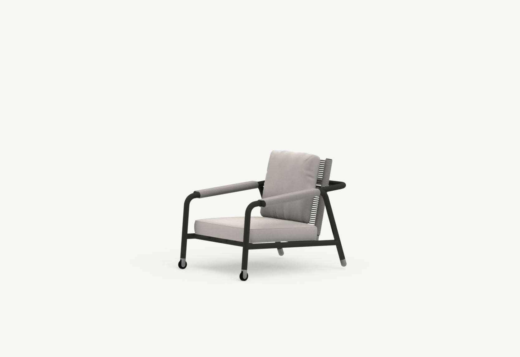 Le design des canapés et des fauteuils de la collection Astra joue sur la juxtaposition de l’aluminium tubulaire massif et des cordes au toucher coton, pour créer une combinaison fraîche, légère et confortable qui se décline en deux fauteuils lounge – avec dossier haut ou bas – et un canapé trois places.