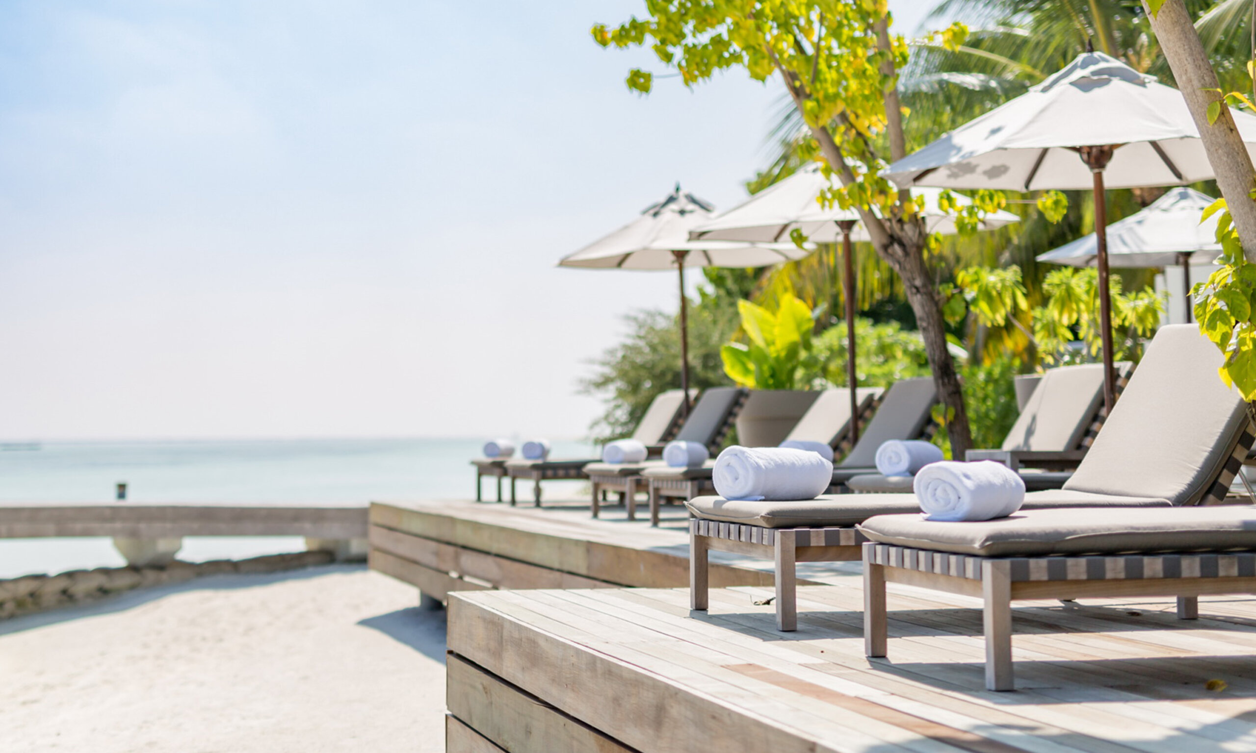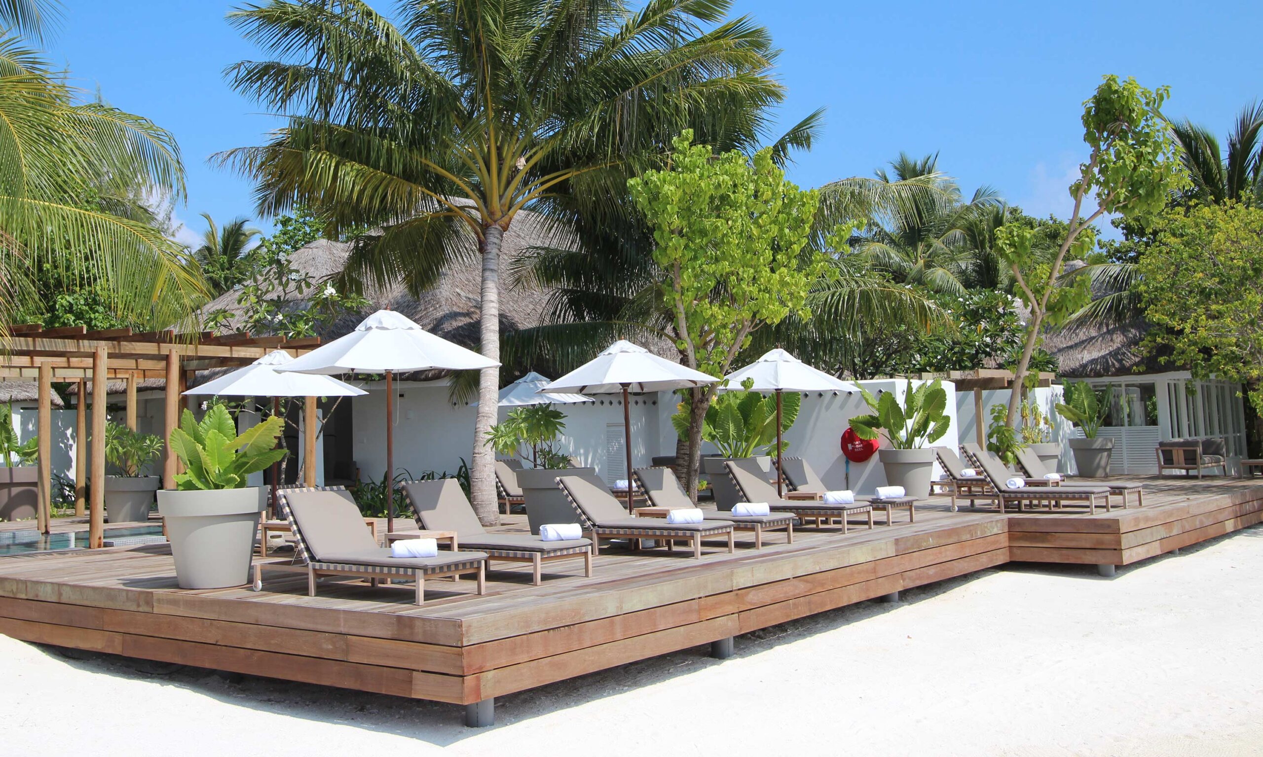 Les meubles d’extérieur exclusifs RODA ont été sélectionnés pour le mobilier de la plage et, grâce au choix de couleurs sobres et de matériaux utilisés, ils s’intègrent parfaitement au paysage paradisiaque et aux sables blancs des Maldives.