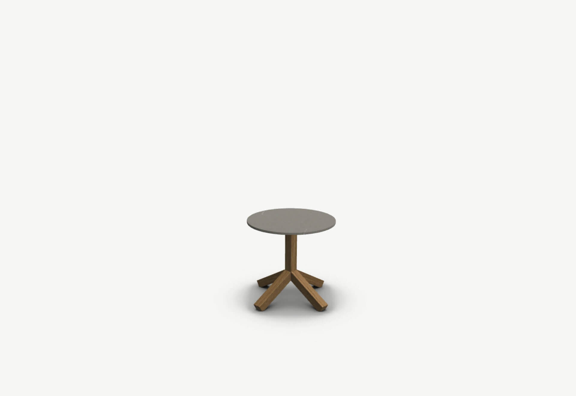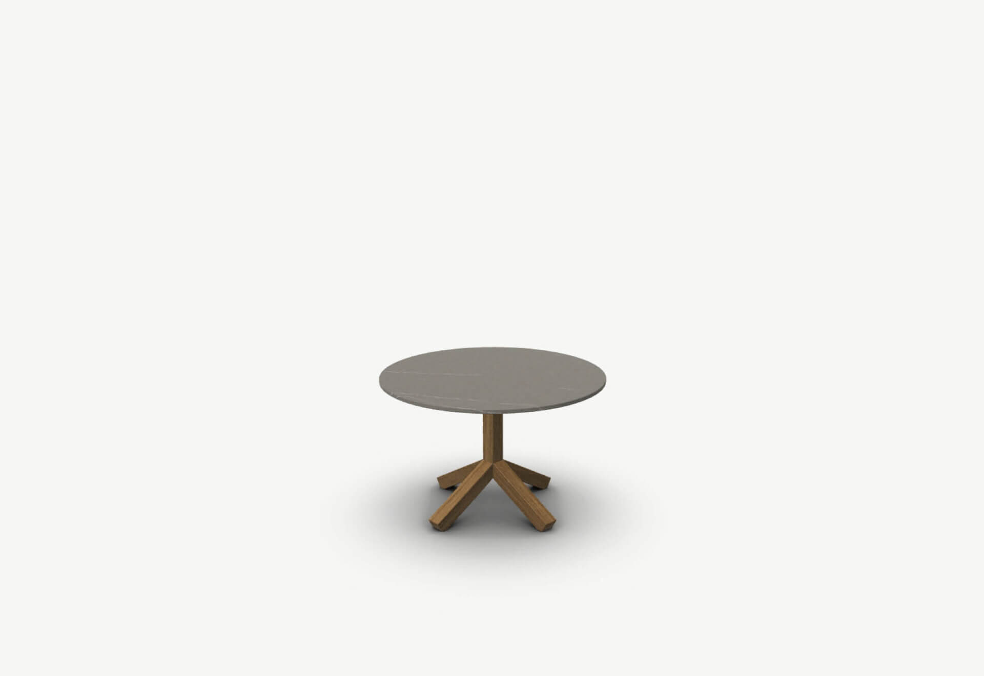 Les dimensions harmonieuses de la table basse, composée d’un plateau fin soutenu par un pied central – en teck massif – qui se décompose en quatre points d’appui au sol, lui permettent de s’adapter à tous les styles et tous les outdoor espaces.