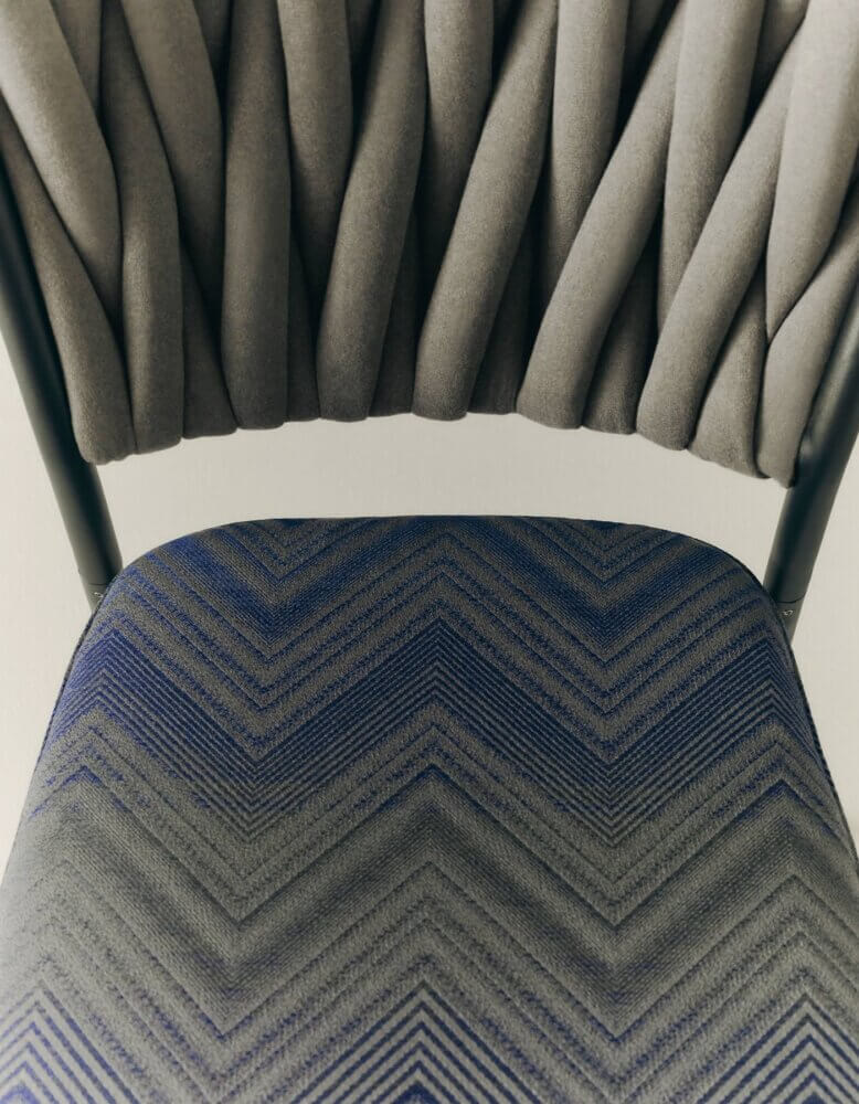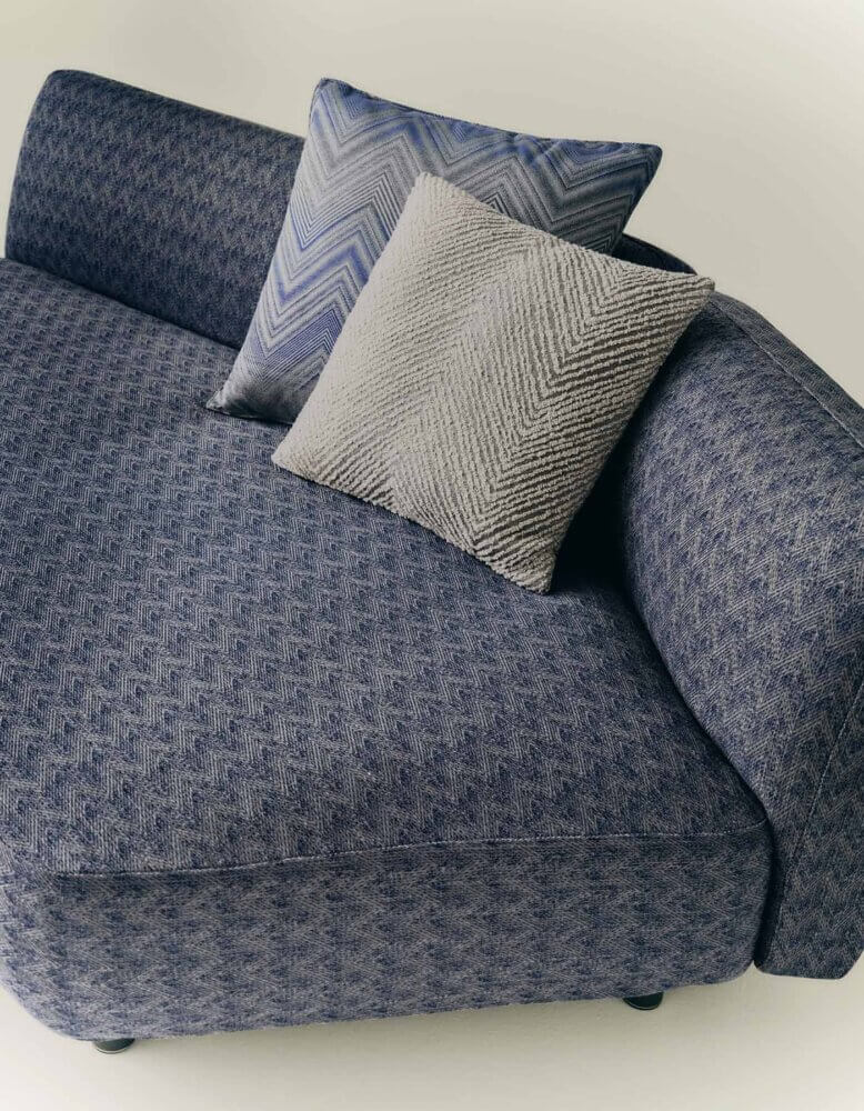 Les formes embrassent les motifs et les tissus habillent les mobiliers, dans la fusion harmonieuse et complémentaire de deux mondes – RODA et Missoni – depuis toujours liés au design, au savoir faire, à la créativité et à la beauté. Une symétrie de forces entre deux réalités industrielles et artisanales, toutes deux reconnaissables dans leurs produits pour leur design méticuleux et l’excellence de leur qualité de fabrication, réalisée dans le district de Varese.
