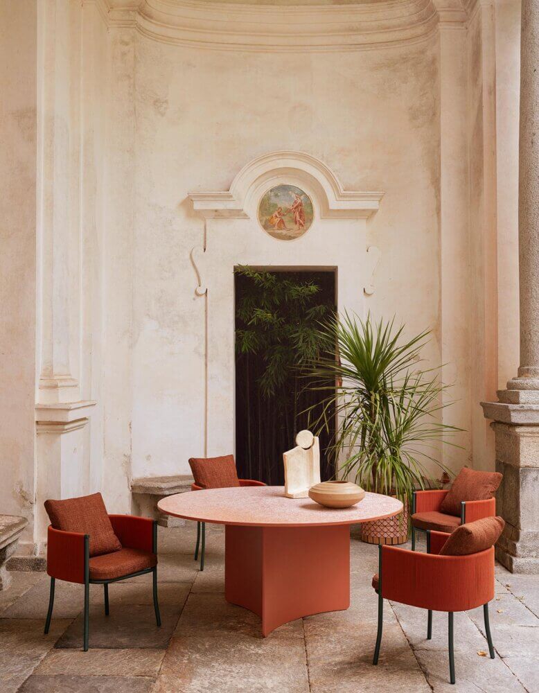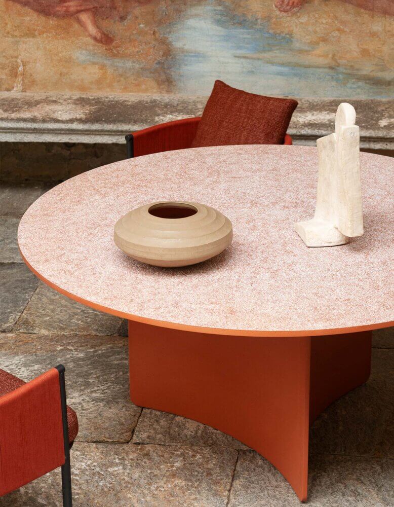 La collezione si compone inoltre di un tavolo da pranzo in tre nuove colorazioni che ne mantengono il carattere scultoreo e la raffinata finitura con graniglia a vista. Realizzato in un innovativo mix di minerali naturali e fibre organiche, il tavolo da pranzo ASPIC unisce resistenza e durata nel tempo a tre esclusive tonalità naturali – Orange, Green e Mole – pensate per integrarsi armoniosamente in ogni ambiente outdoor.